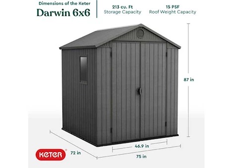 Darwin 6x6 Opbergschuur, een veelzijdige en praktische opbergoplossing, speciaal ontworpen voor wie op zoek is naar efficiënte organisatie in beperkte buitenruimtes. Deze schuur is vervaardigd met precisie en duurzaamheid in gedachten en biedt een perfecte balans tussen formaat en functionaliteit, ideaal voor huiseigenaren, tuiniers en buitenliefhebbers. De Darwin 6x6 Opbergschuur is gemaakt van hoogwaardige materialen en biedt robuuste bescherming tegen de elementen, waardoor uw waardevolle buitenspullen worden beschermd tegen regen, wind en uv-straling. Het robuuste frame en de verstevigde panelen zorgen voor structurele integriteit en garanderen een lange levensduur die de tand des tijds doorstaat. Ondanks zijn bescheiden omvang biedt de Darwin 6x6 Opbergschuur voldoende opbergruimte voor diverse spullen, van tuingereedschap en -apparatuur tot buitenspeelgoed, seizoensdecoraties en meer. De royale afmetingen van 6x6 maken hem geschikt voor het opbergen van grotere spullen, terwijl hij toch compact blijft en naadloos past in kleinere tuinen of op terrassen.